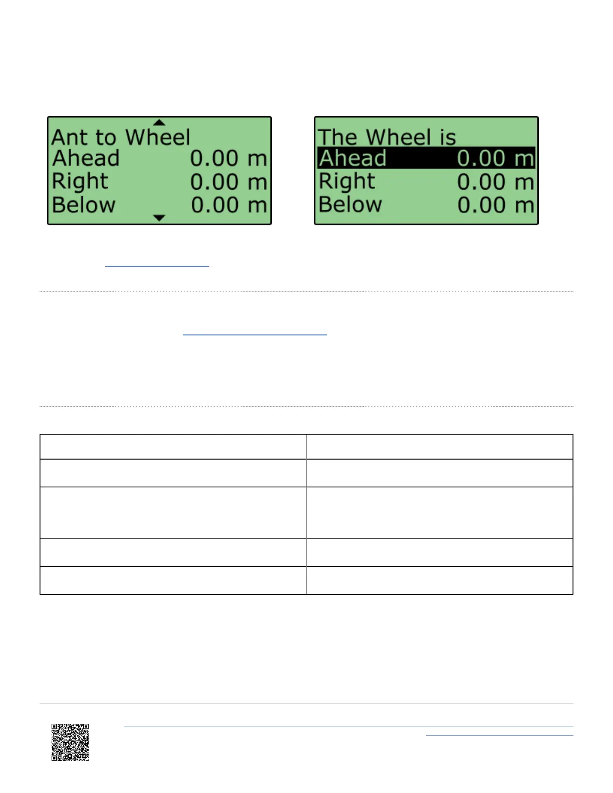 8. Scroll to the 'Ant to Wheel' menu and enter the distances measured between the wheel speed reference point and