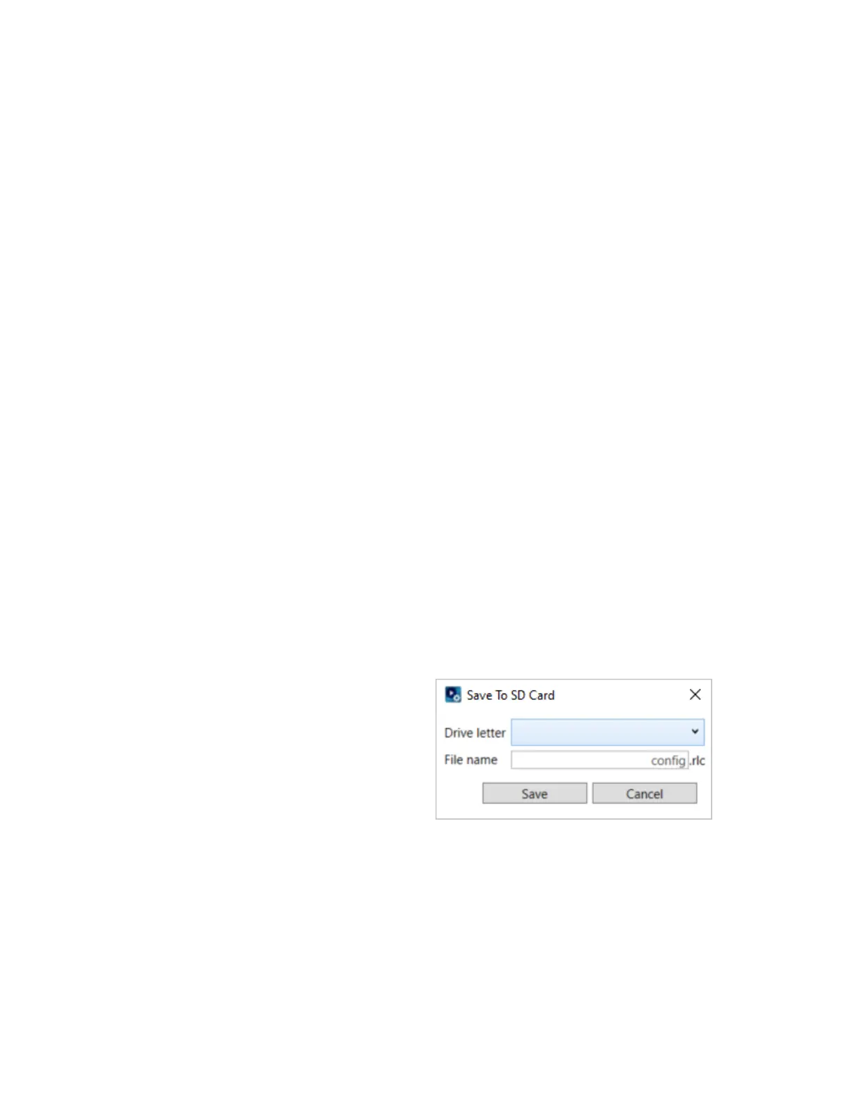 you want to save a config file (RLC) of the current configuration. Give your config file a name and click Save.