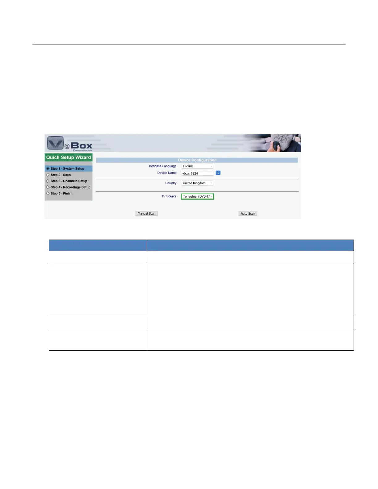 Table 2: Quick Setup Wizard – Step 1 – System Setup: System Settings page
