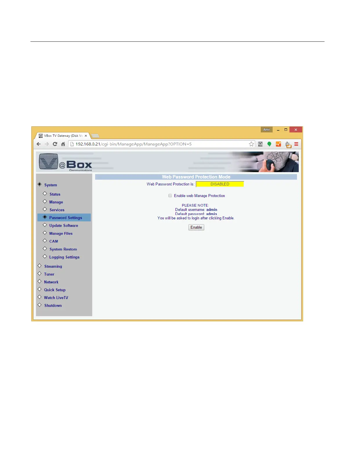2. Check the Enable the Web Manage Protection checkbox and press Enable