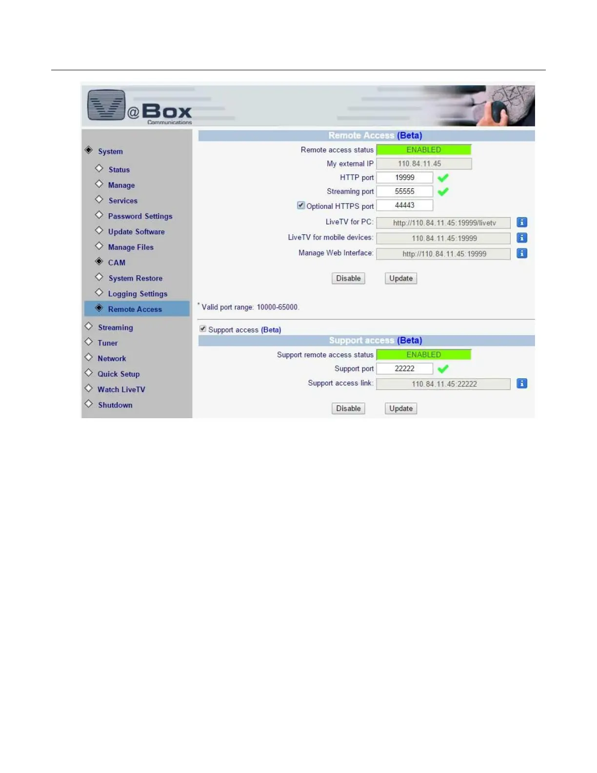 LiveTV for mobile – Enter this IP address and port on the VBox Live TV app