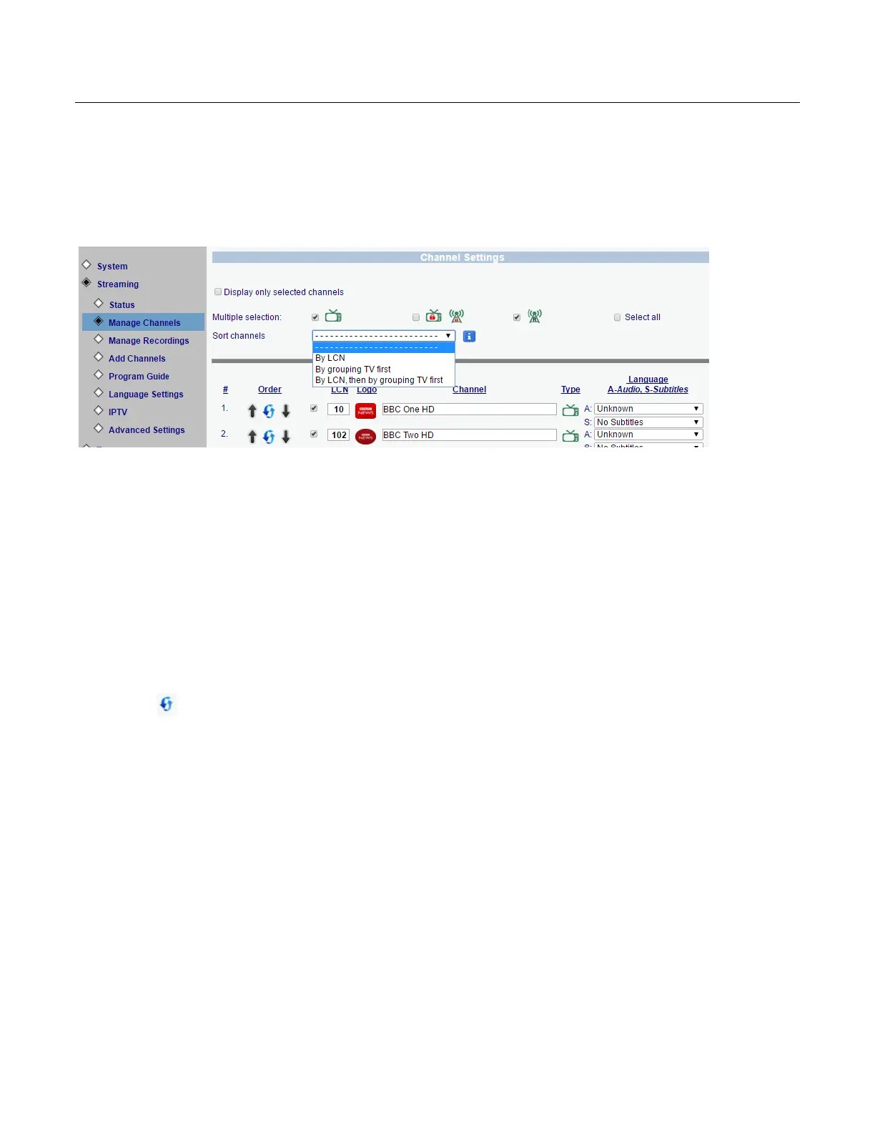 By LCN - Sort channels by LCN number, you can use the default LCN number as received from the TV