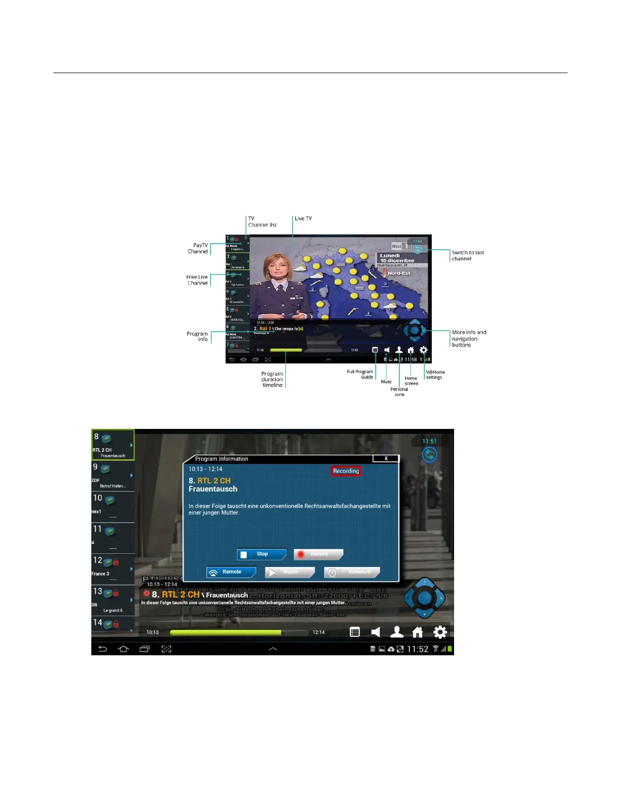 navigation buttons to see the channel info. On recorded channels a red circle will is shown next to the
