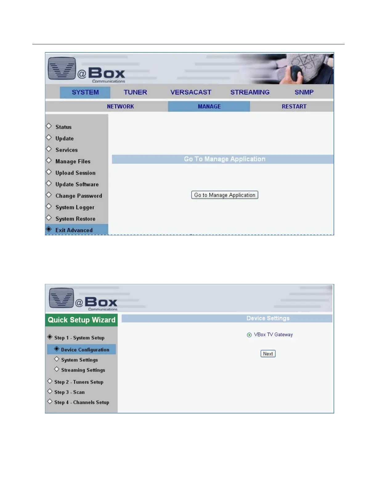13. Click to “Go to Manage Application” button. When prompted to Start Quick Setup Wizard click OK