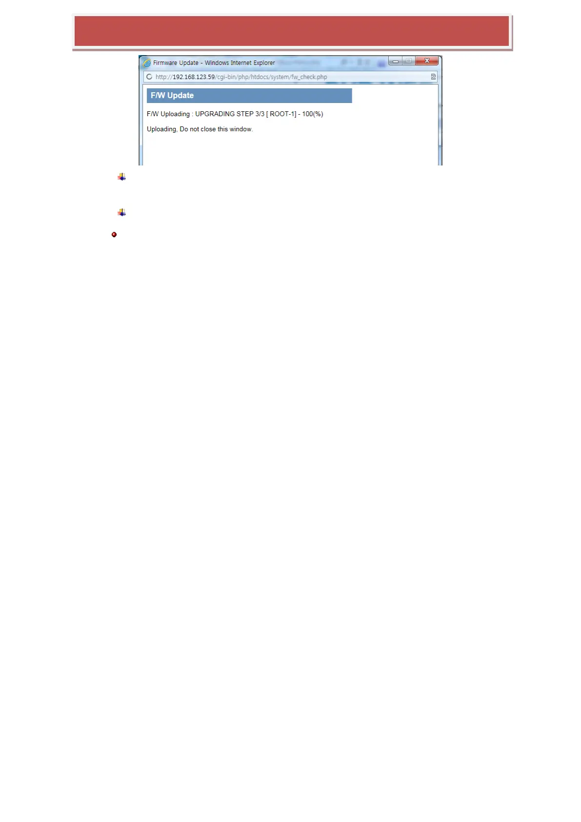 Turning off the power in any process of f/w updating cause the damage of the system.