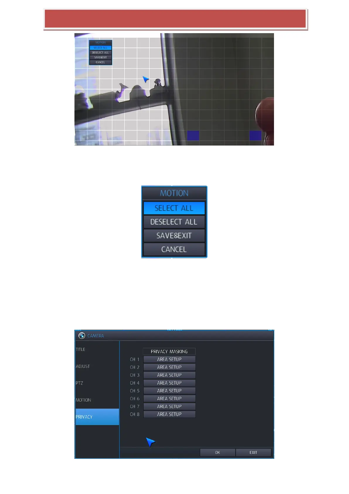 Once the detection area has been defined, choose SAVE & EXIT to save the area and return to the motion setup