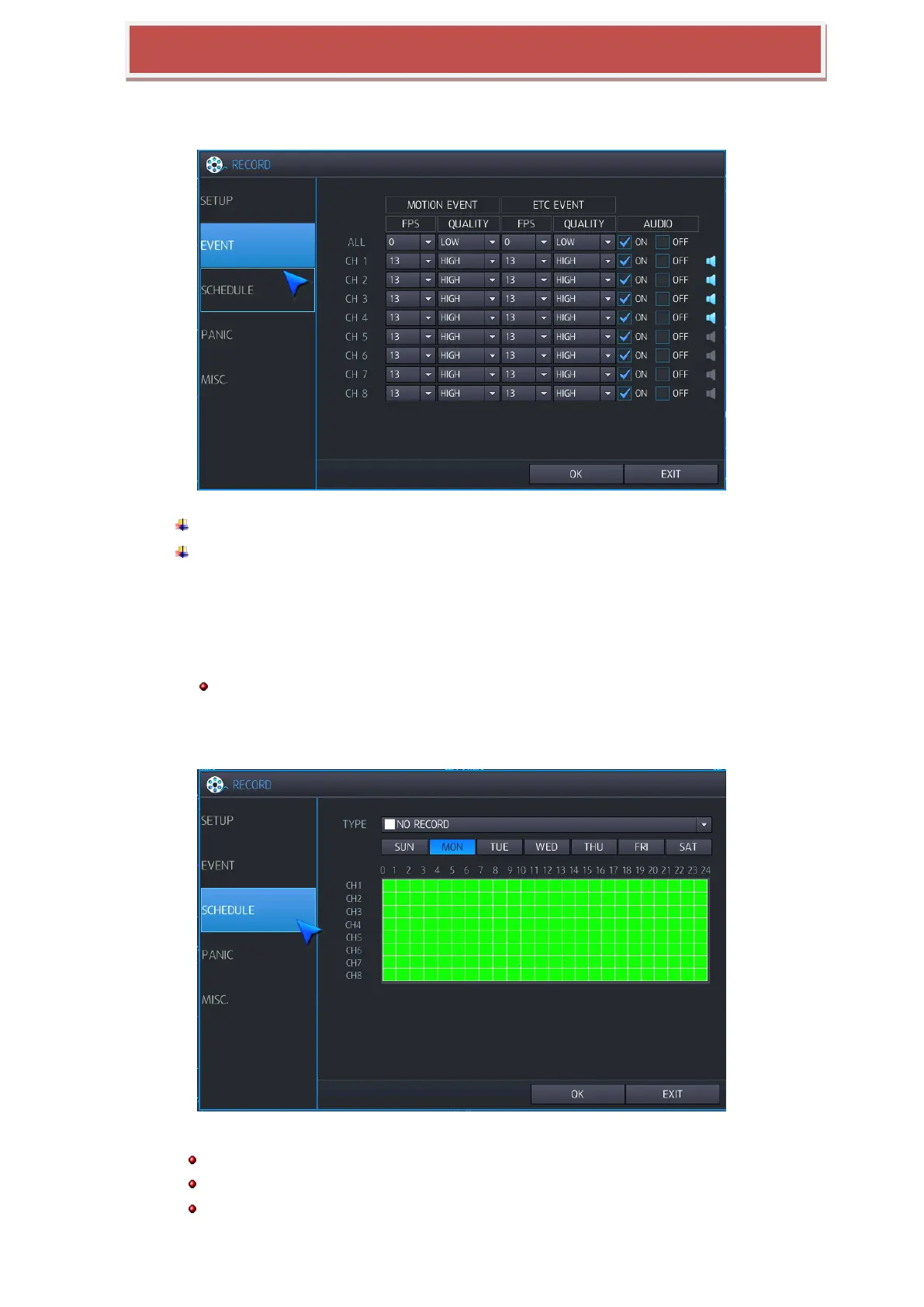 MOTION EVENT: You can configure recording condition when motion triggered.