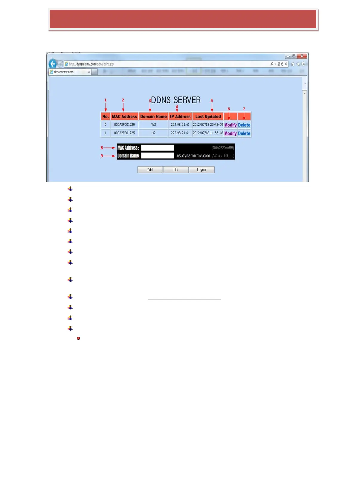 8 : Input Mac Address of HYBRID-DVR that you want to register newly into DDNS