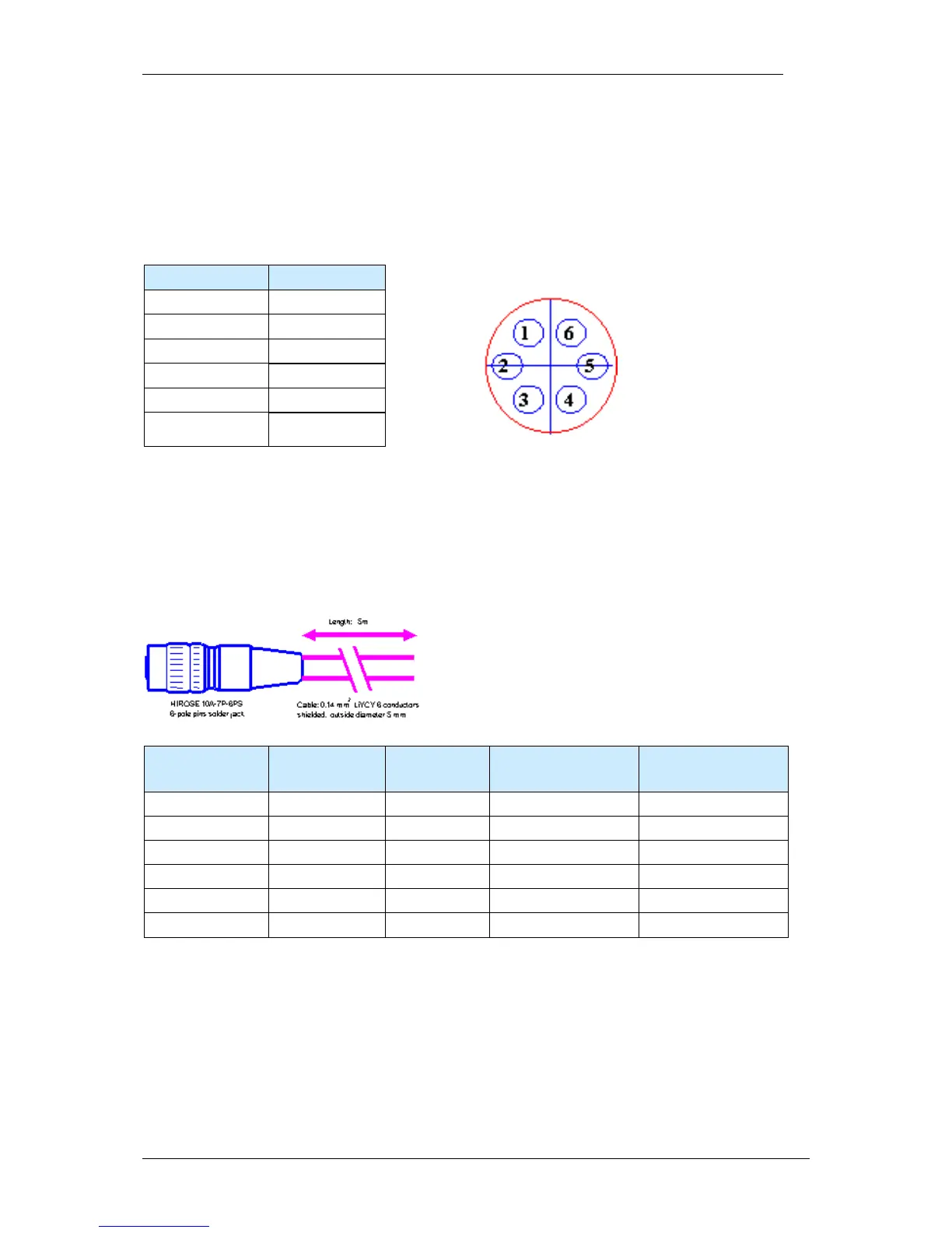 Signal Pin (to cam.) Pin (to PC) Cable Color