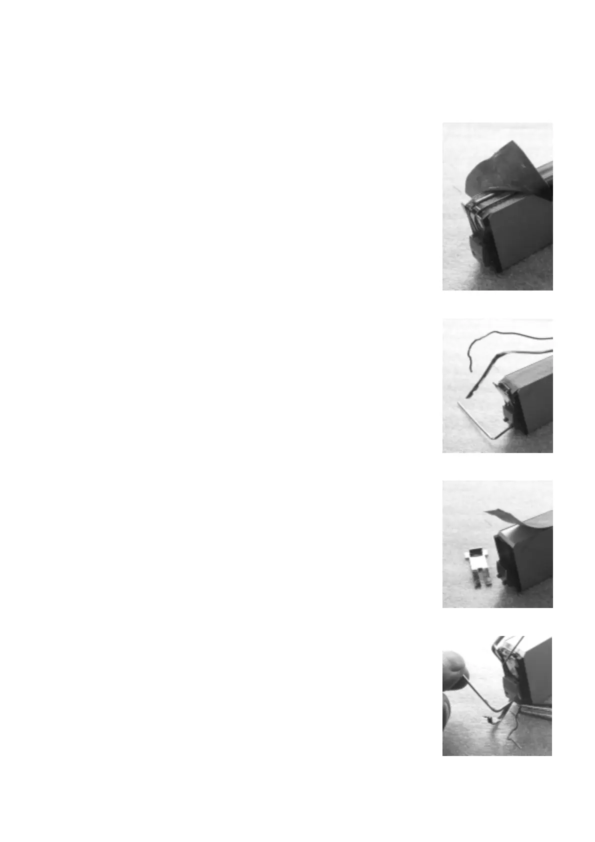 e) Troque a fita de fibra de vidro e a mola de contato. Coloque os arames