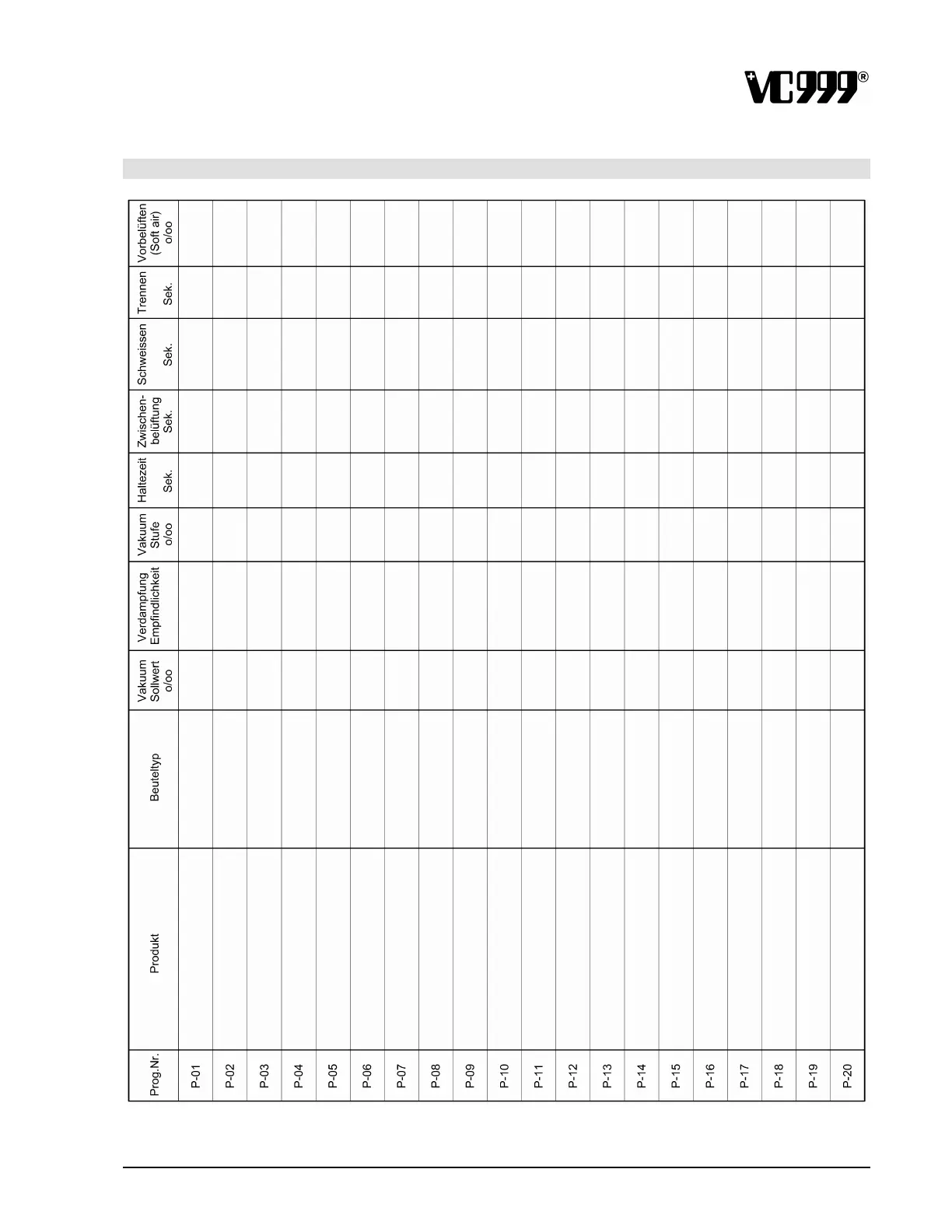vc999 K5 - Program Table
