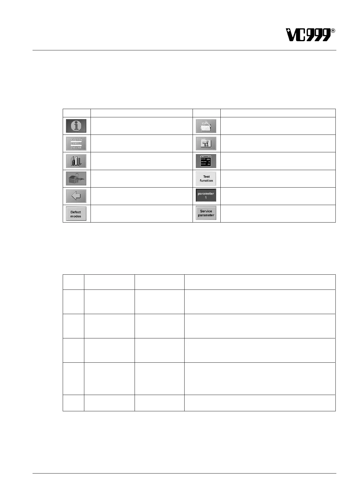 bols on the screen to open a certain mask. The following table displays the various symbols and which