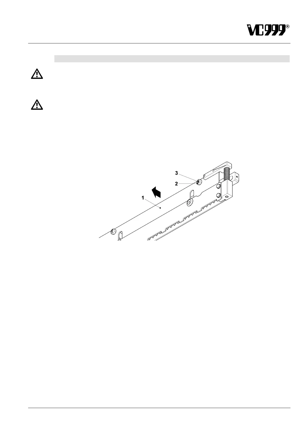 2. Lift the blade unit (1) off the 4 set screws (3) and carefully remove it from the machine.