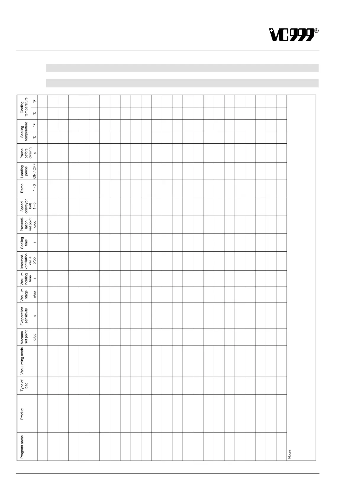 vc999 K7 - Appendix; Program Table