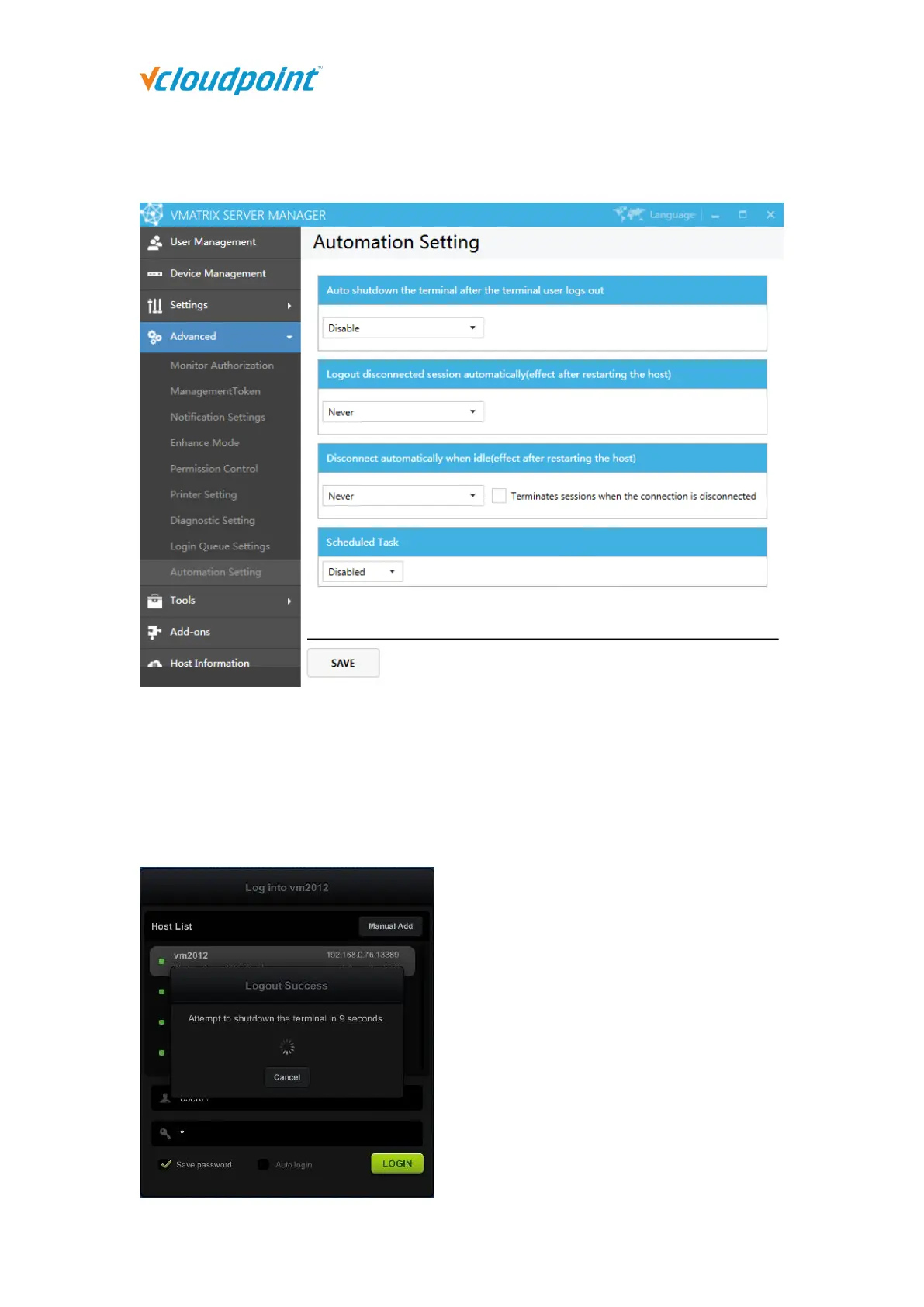 Auto shutdown the terminal after the terminal user logs out: If this function is