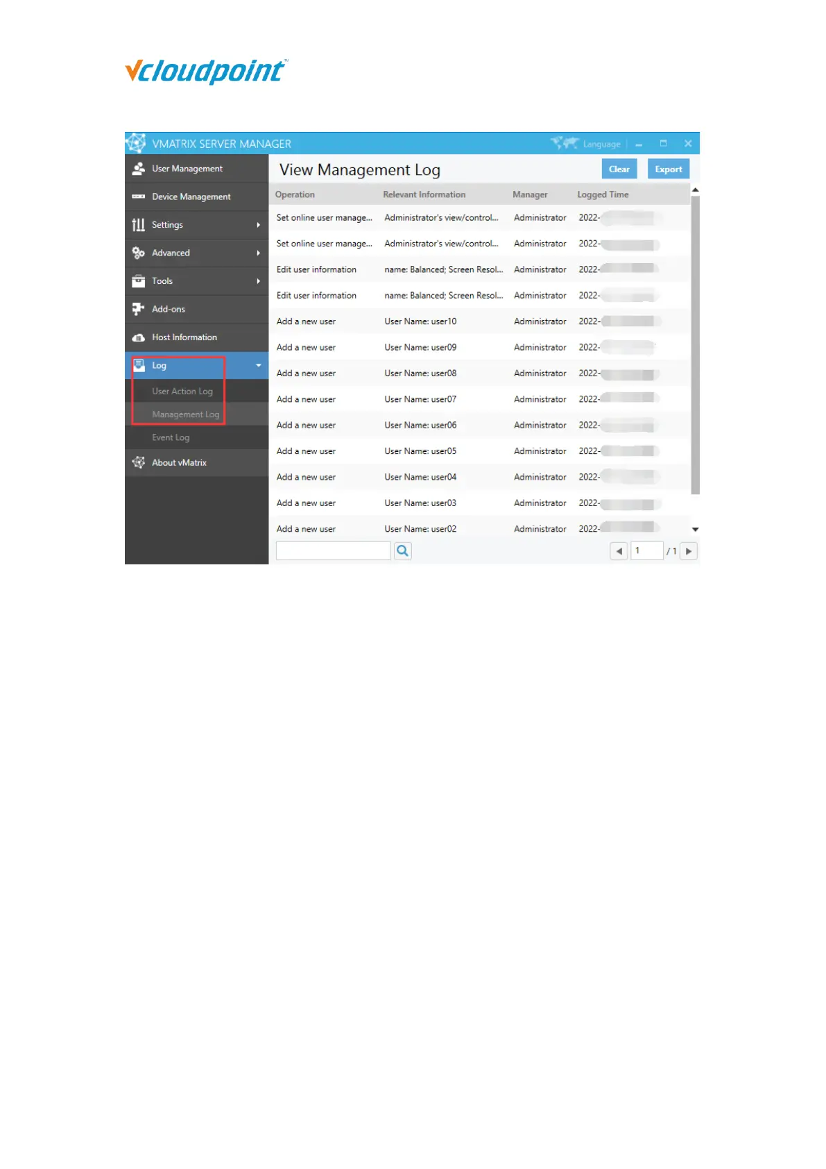vMatrix error log to vCloudPoint technical team when you are reporting a problem. (It