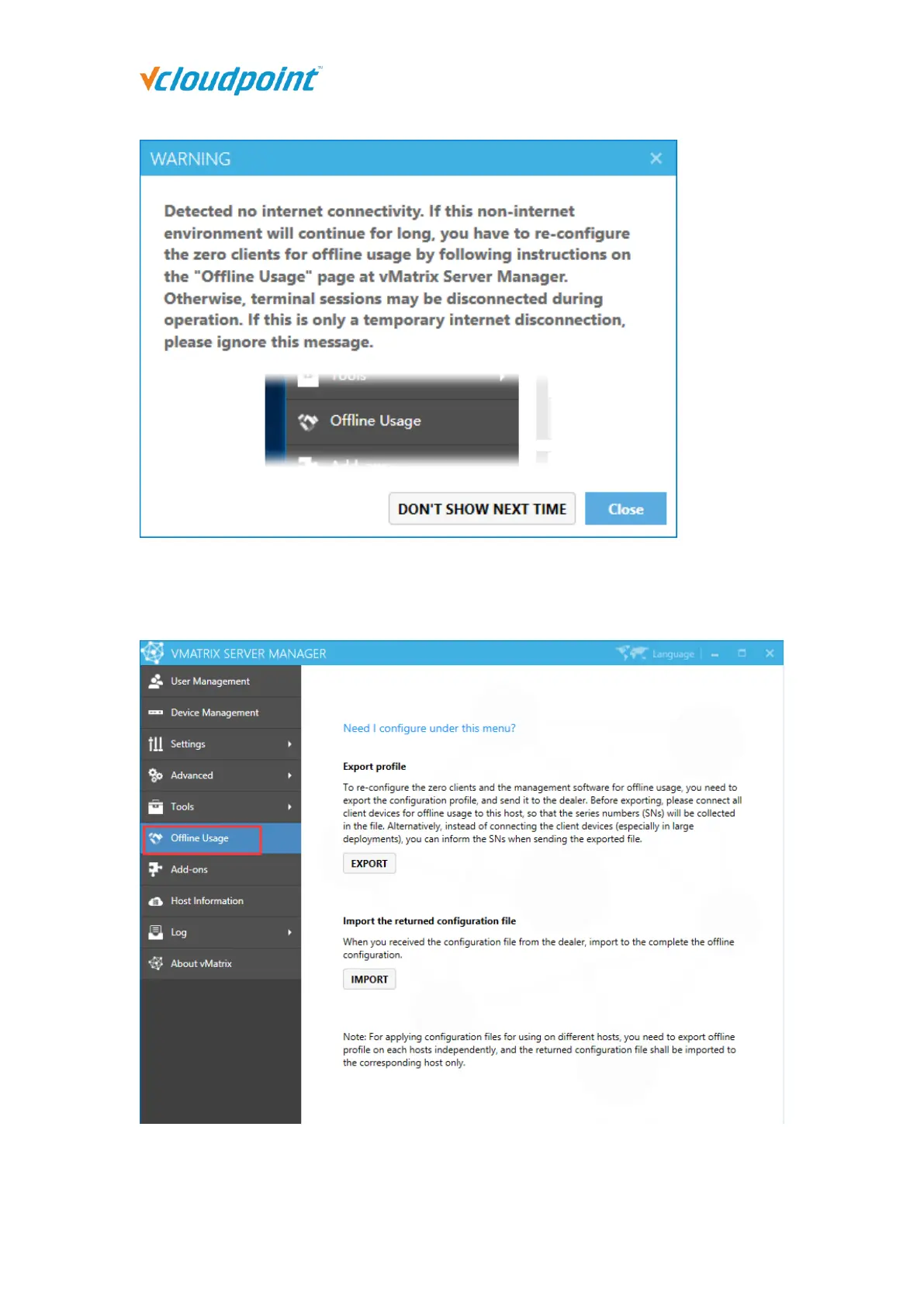 2) Open vMatrix Server Manager, go to Offline Usage page (this page only appears when