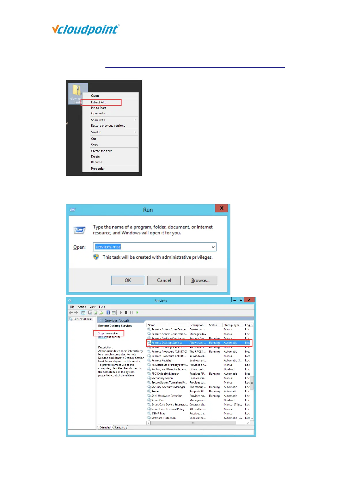 Presss Win”+“R” to run “services.msc, and stop the “Remote Desktop Services”.