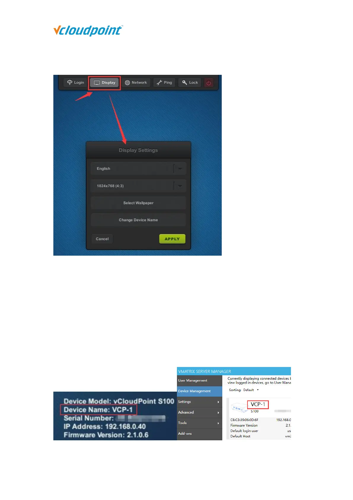Device Name: to change device name; default: S100- (last 8 serial numbers). Device