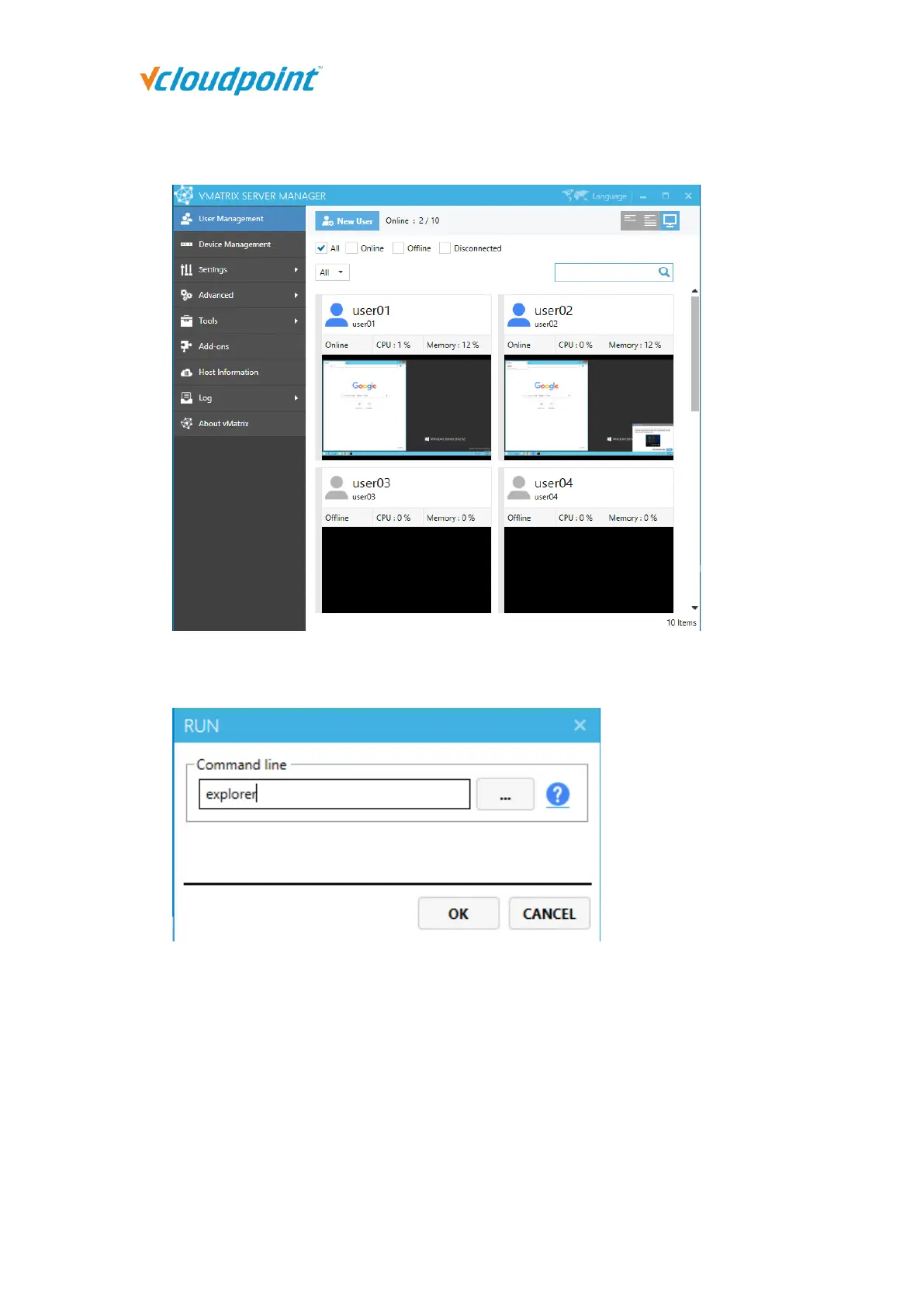 3) You can see the program running in the selected terminal user sessions.
