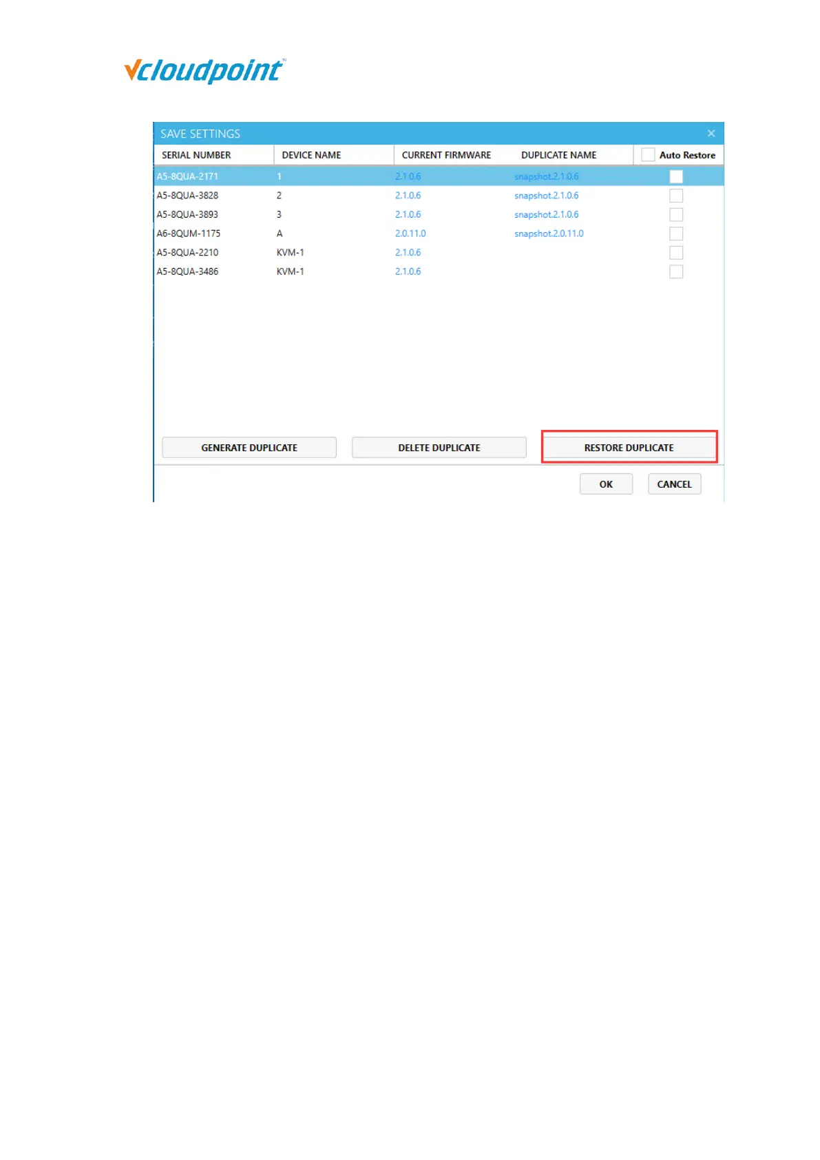 “RESTORE DUPLICATE”.
