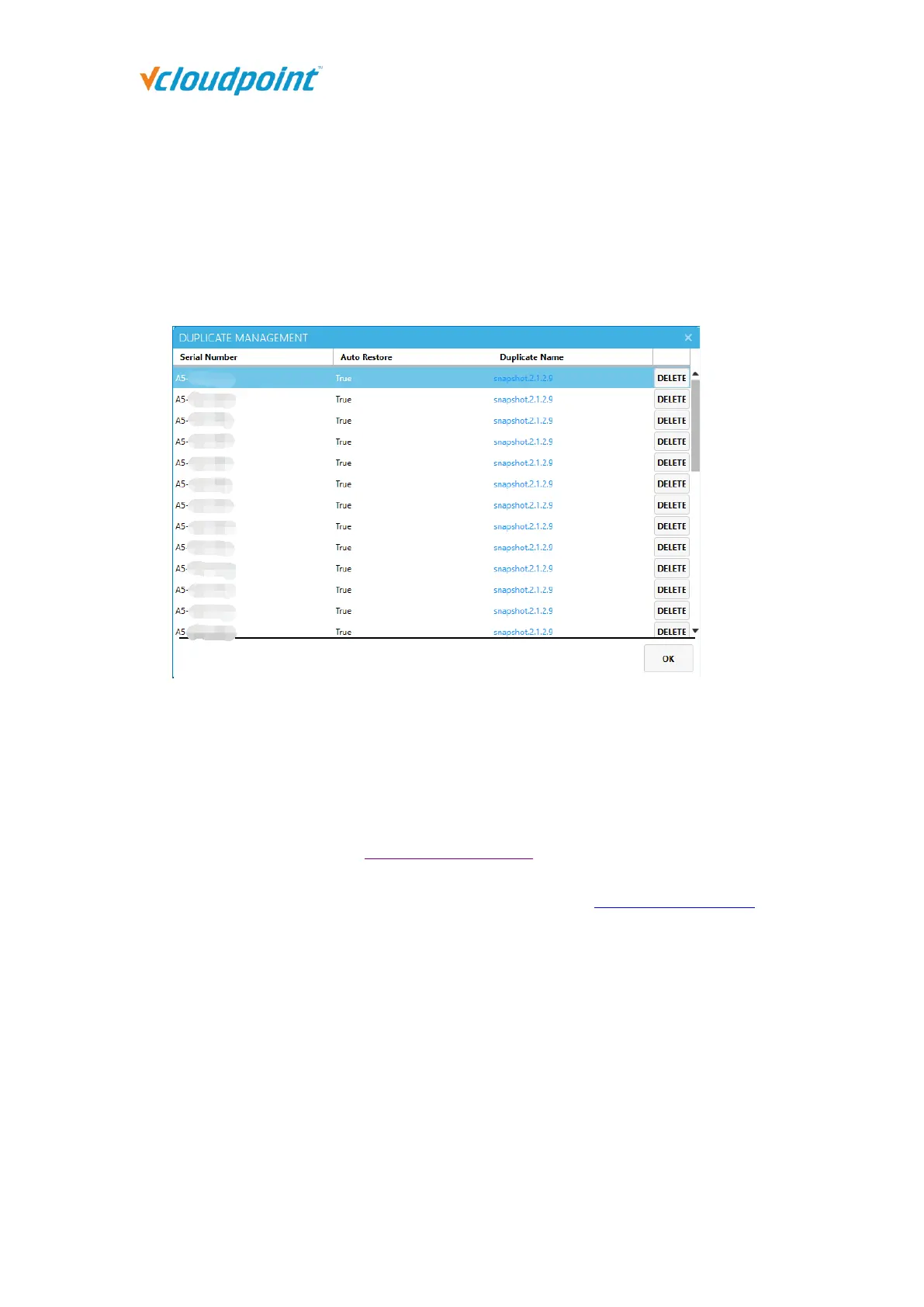 Find the corresponding duplicate in “Duplicate Management” according to the serial