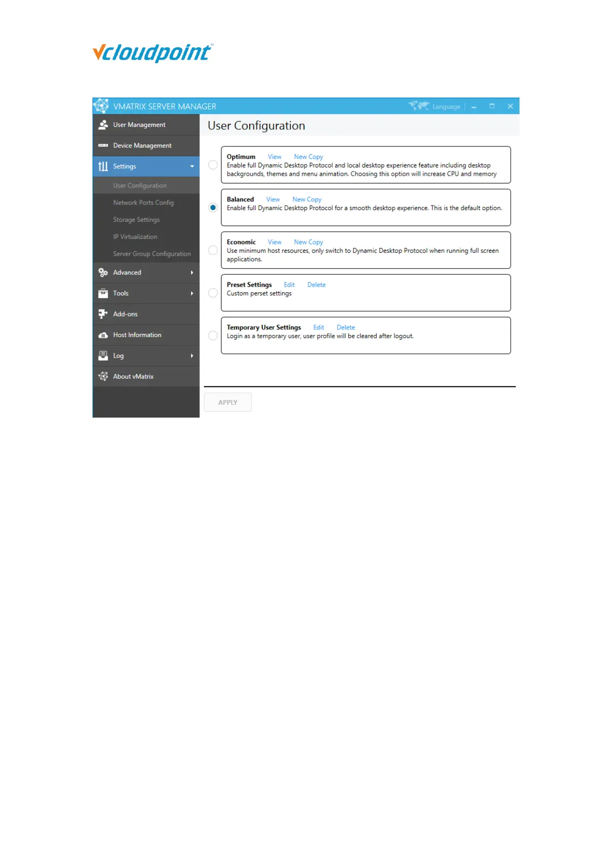 New Copy: Create a new configuration copy based on the preset configuration, and modify