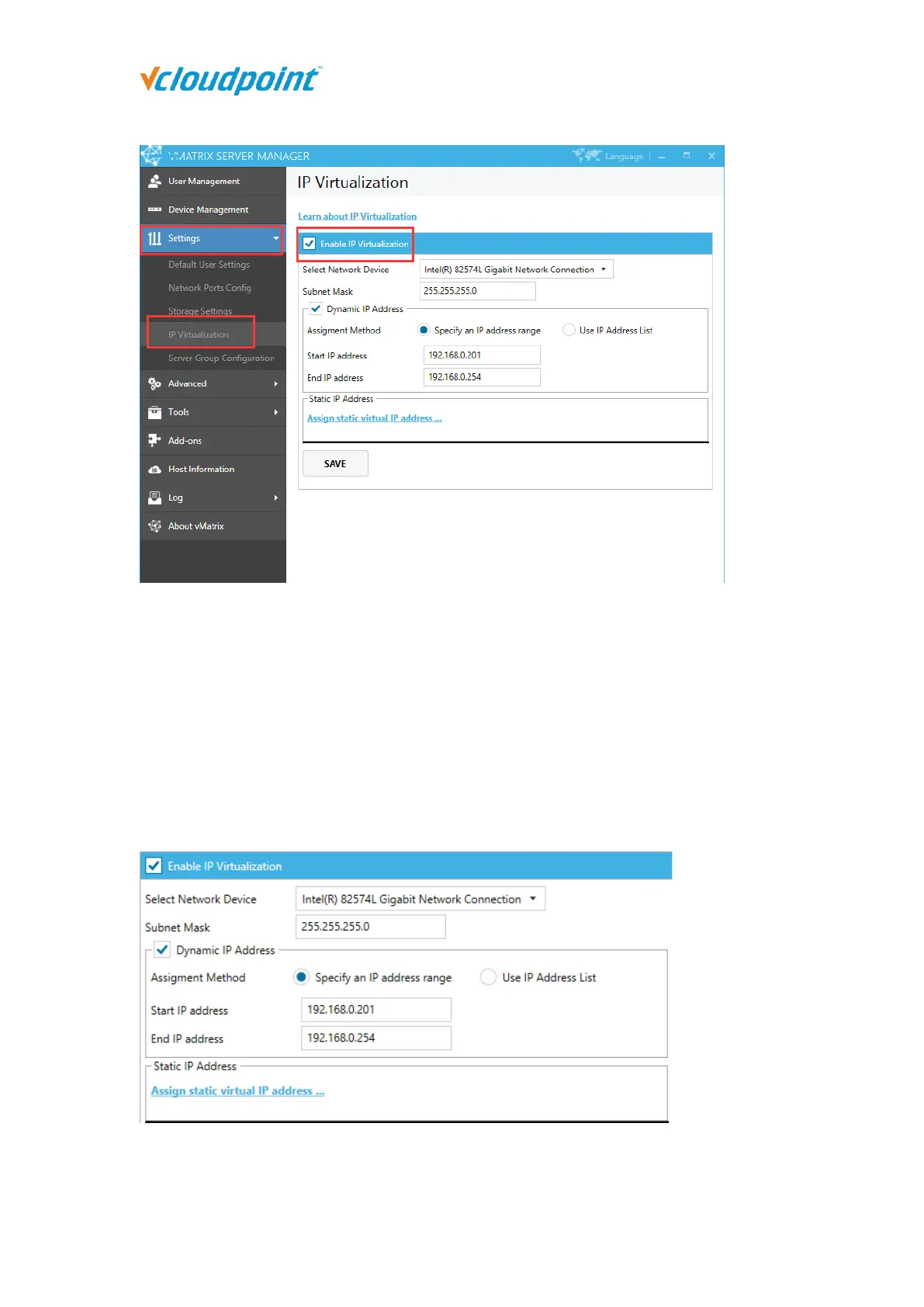 b) IP address list: fill in the IP addresses to be assigned in the IP address list box, one IP