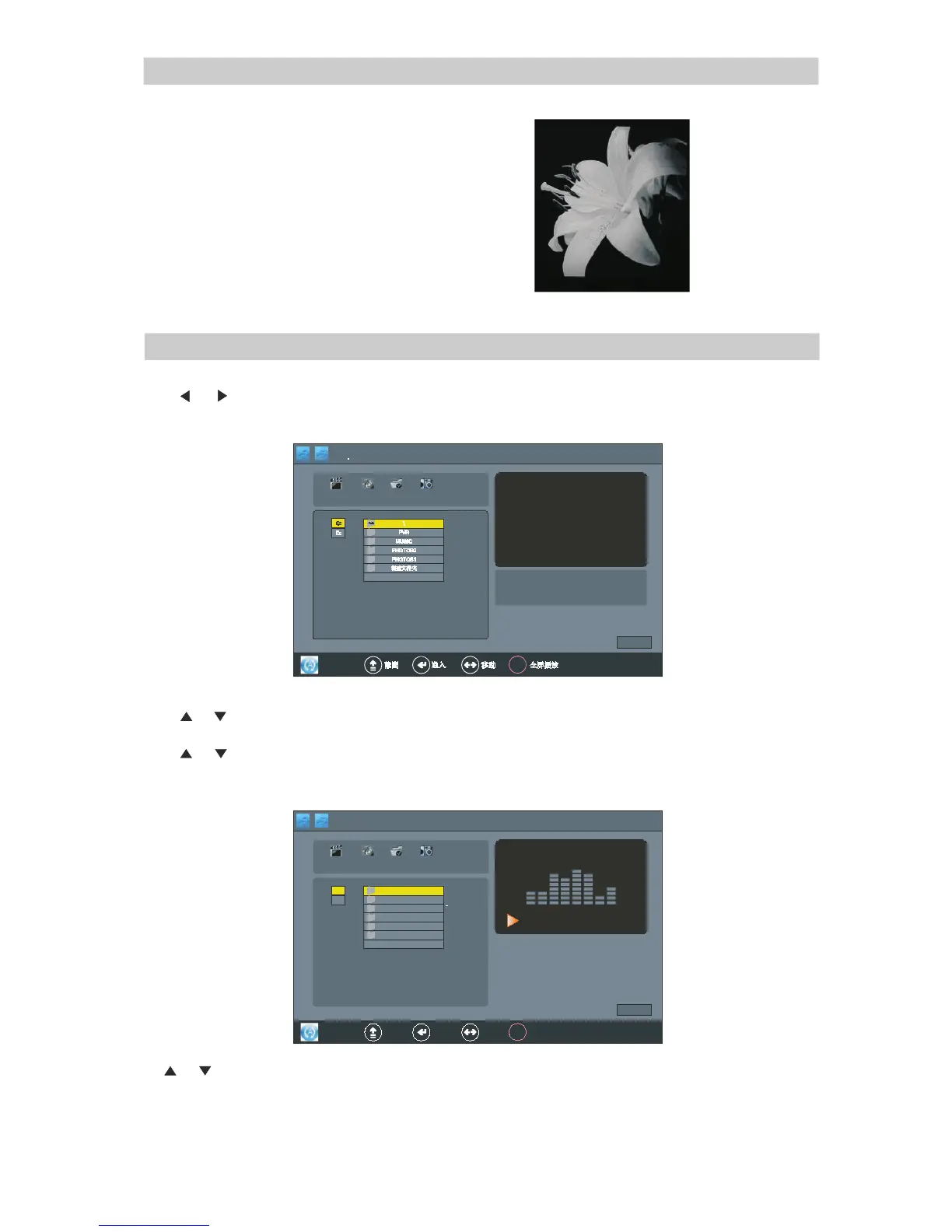 2.按ENTER 鍵進入音樂 界面圖片, 如下圖所示 :