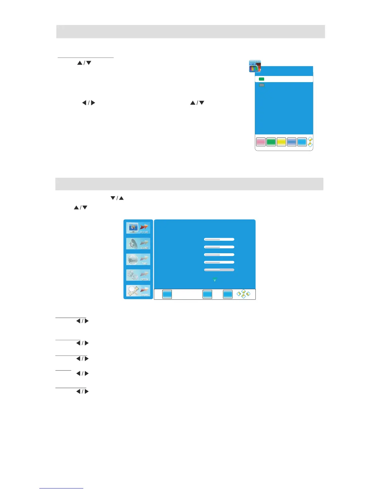 Press "MENU" .and " "buttons to select the PICTURE MENU