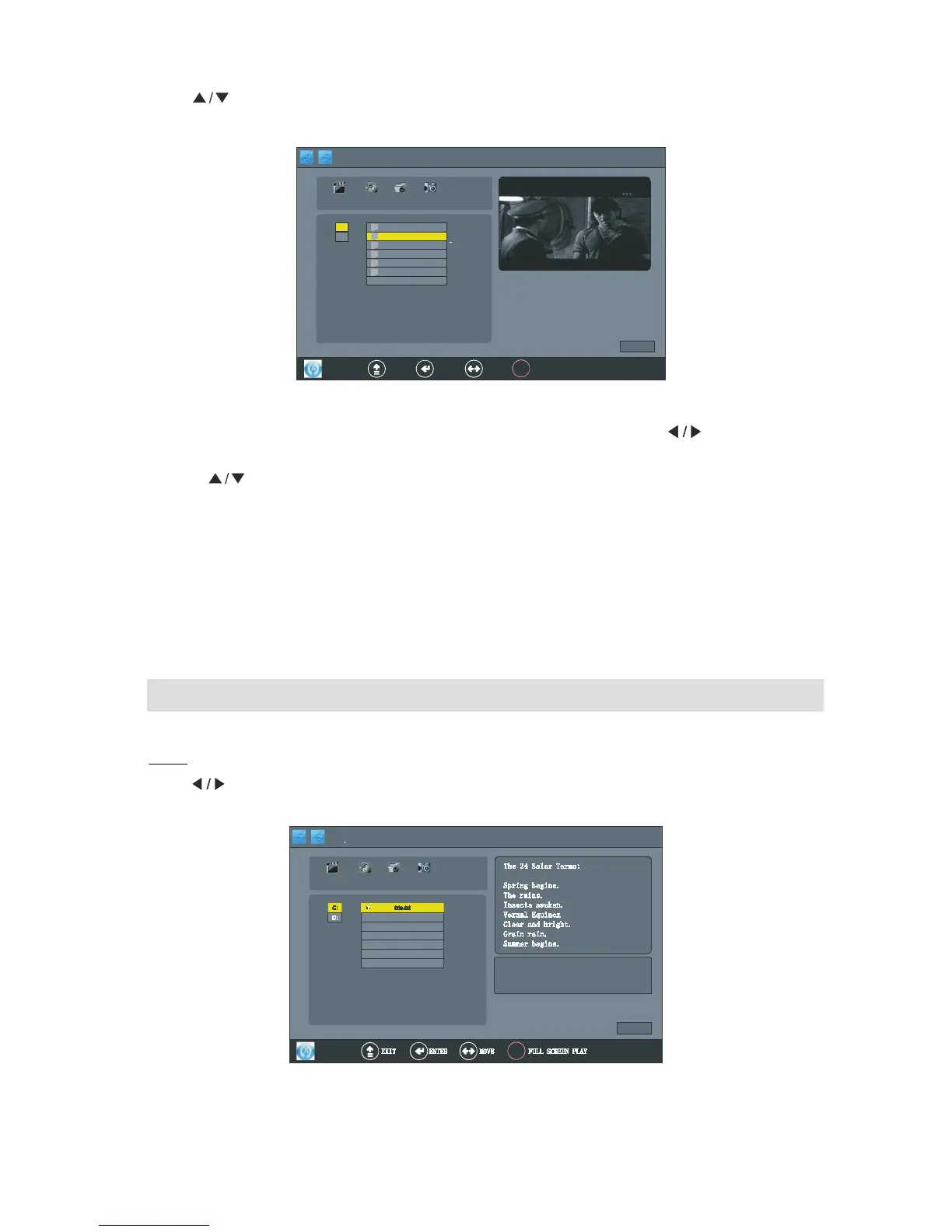 2.Press " " button to select the movie, and press ENTER button to confirm the selected movie, and
