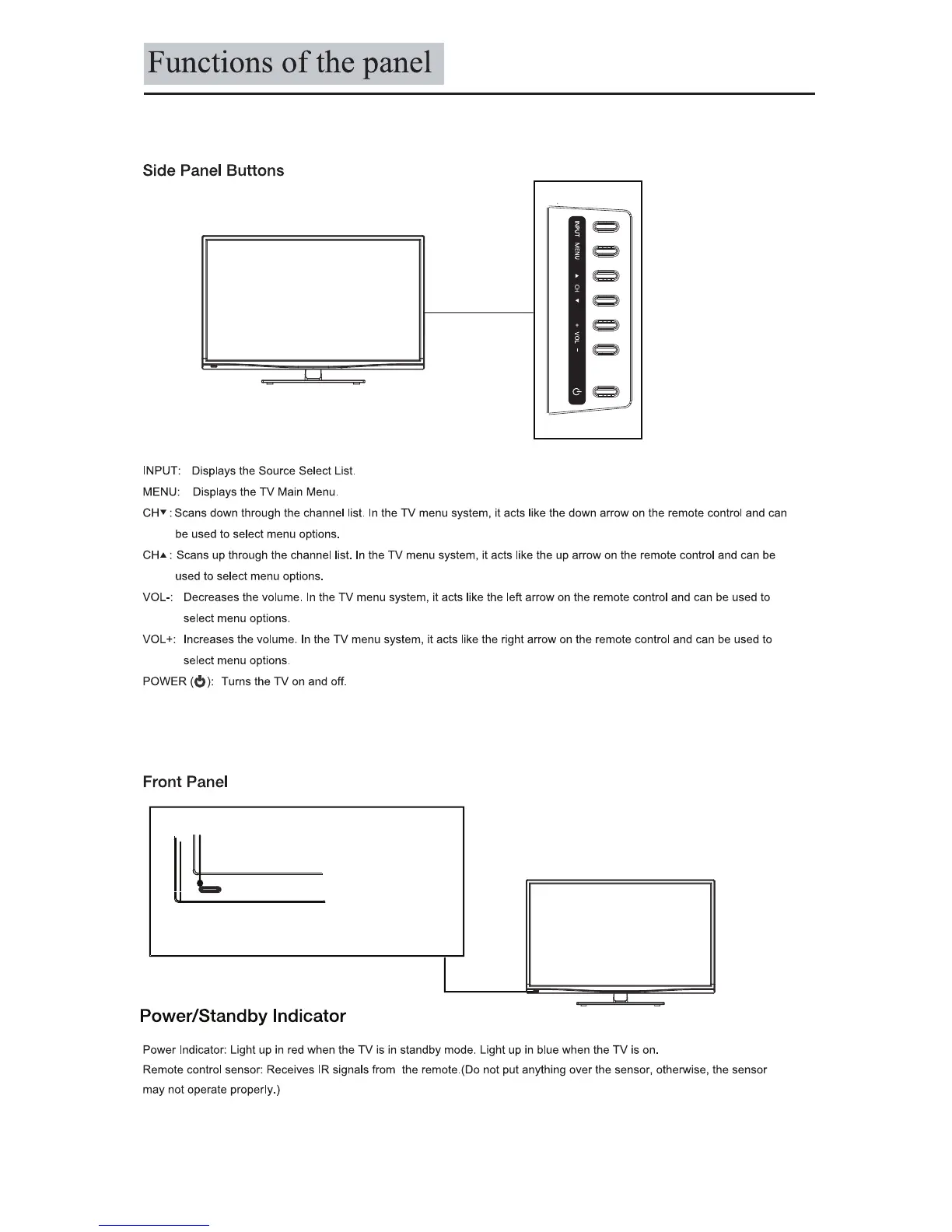 VDigi 32LEDS992 - Functions of the Panel