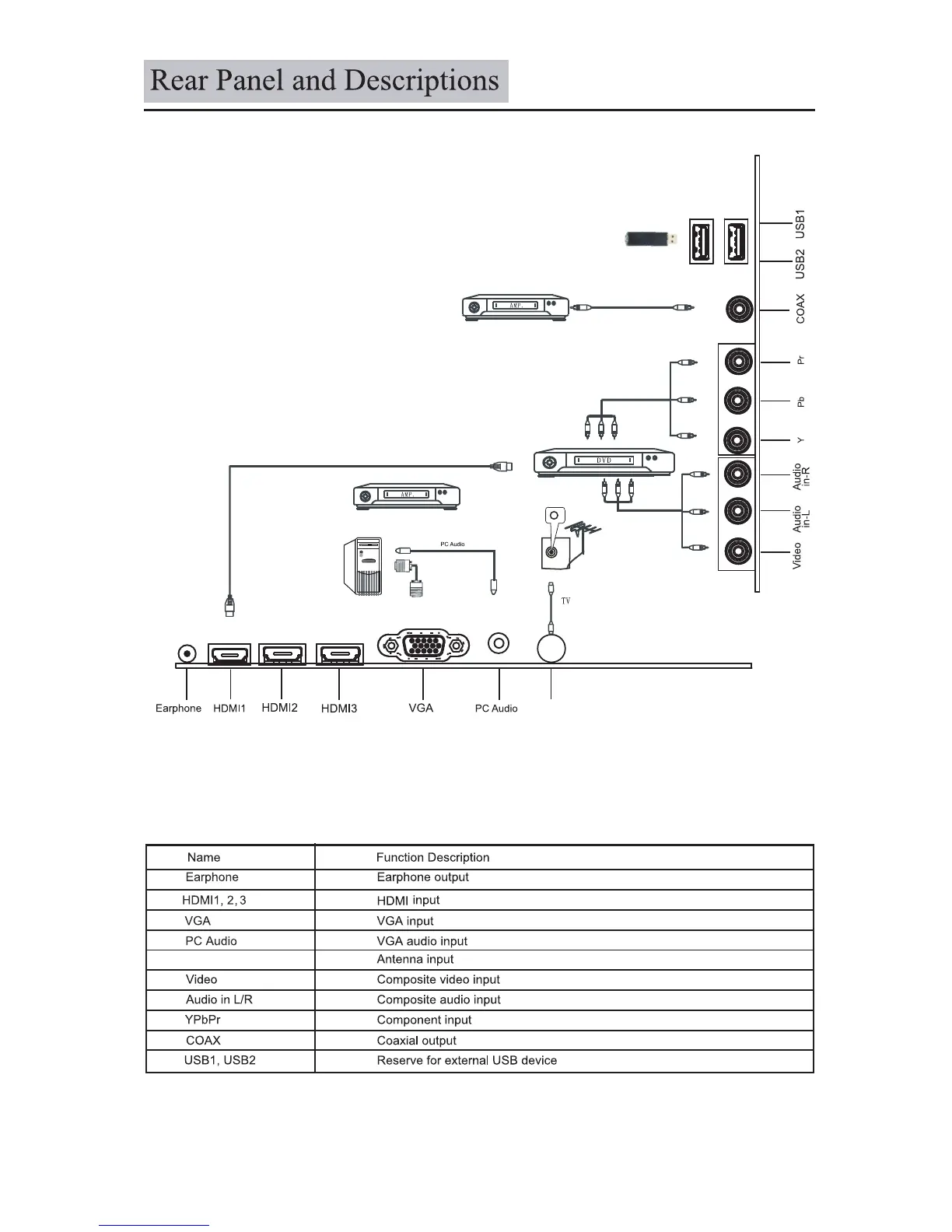 VDigi 32LEDS992 - Rear Panel and Descriptions