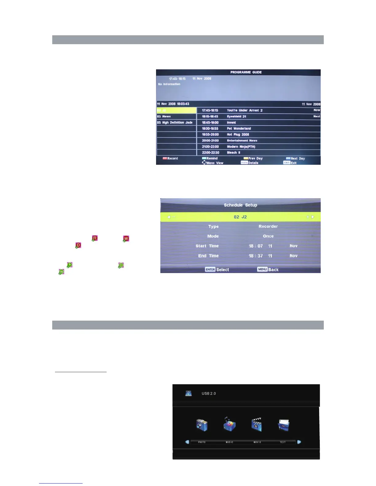 Press the blue button in Schedule List menu to display the recorder menu. Setting the