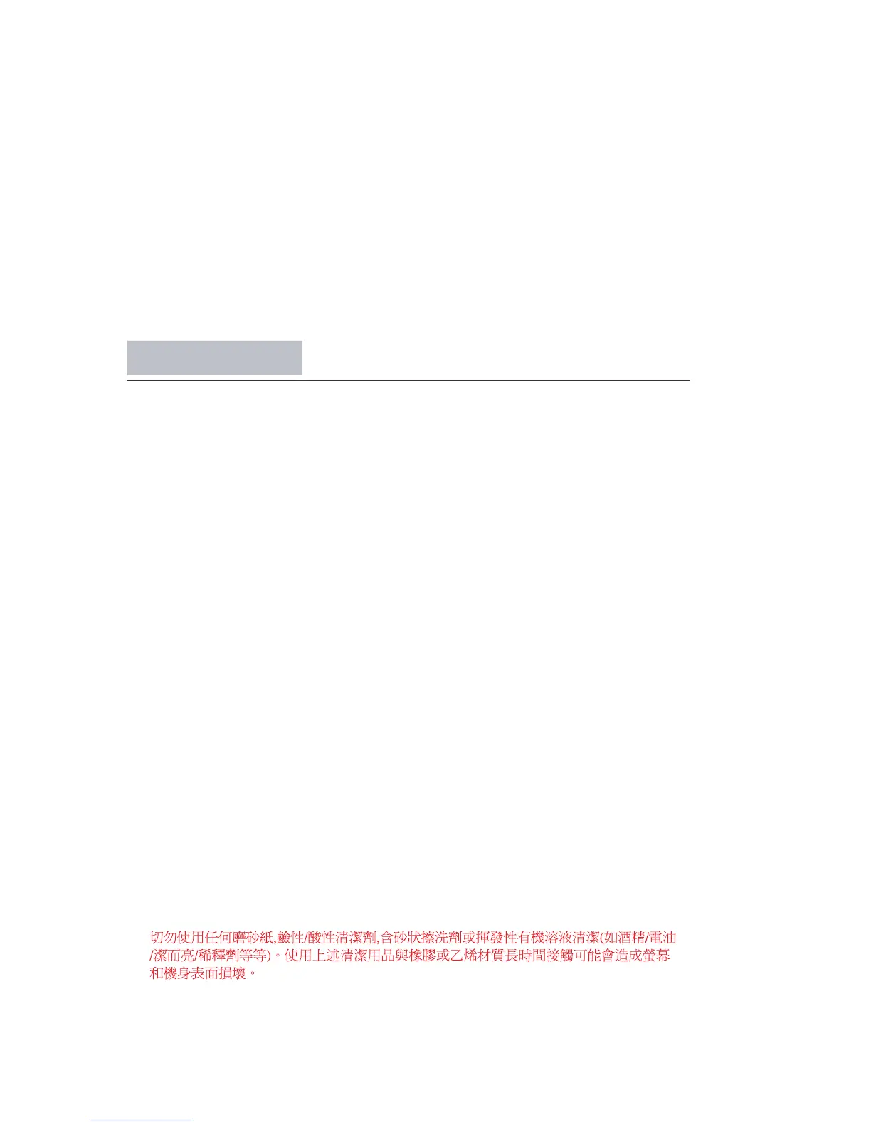 為了避免物質或螢幕塗層剝離, 請遵照下列預先注意項: