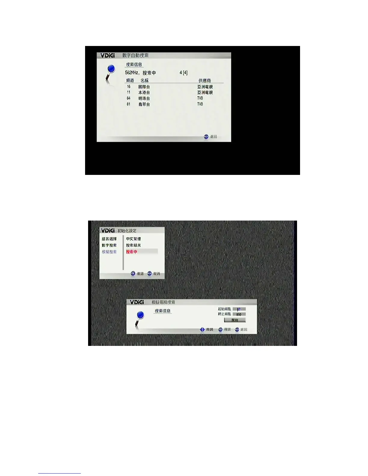 完成數碼廣播搜索後直接進行類比電視頻道的搜索搜索從 47MHz