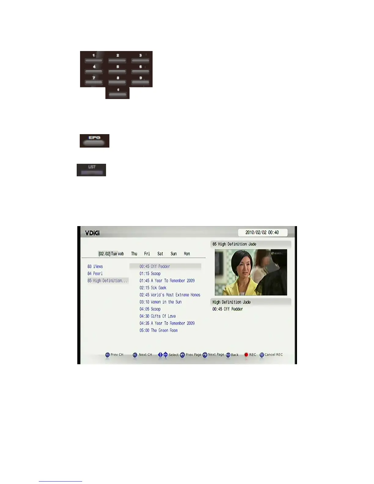 Use the built-in Electronic Programme Guide (EPG) to browse and