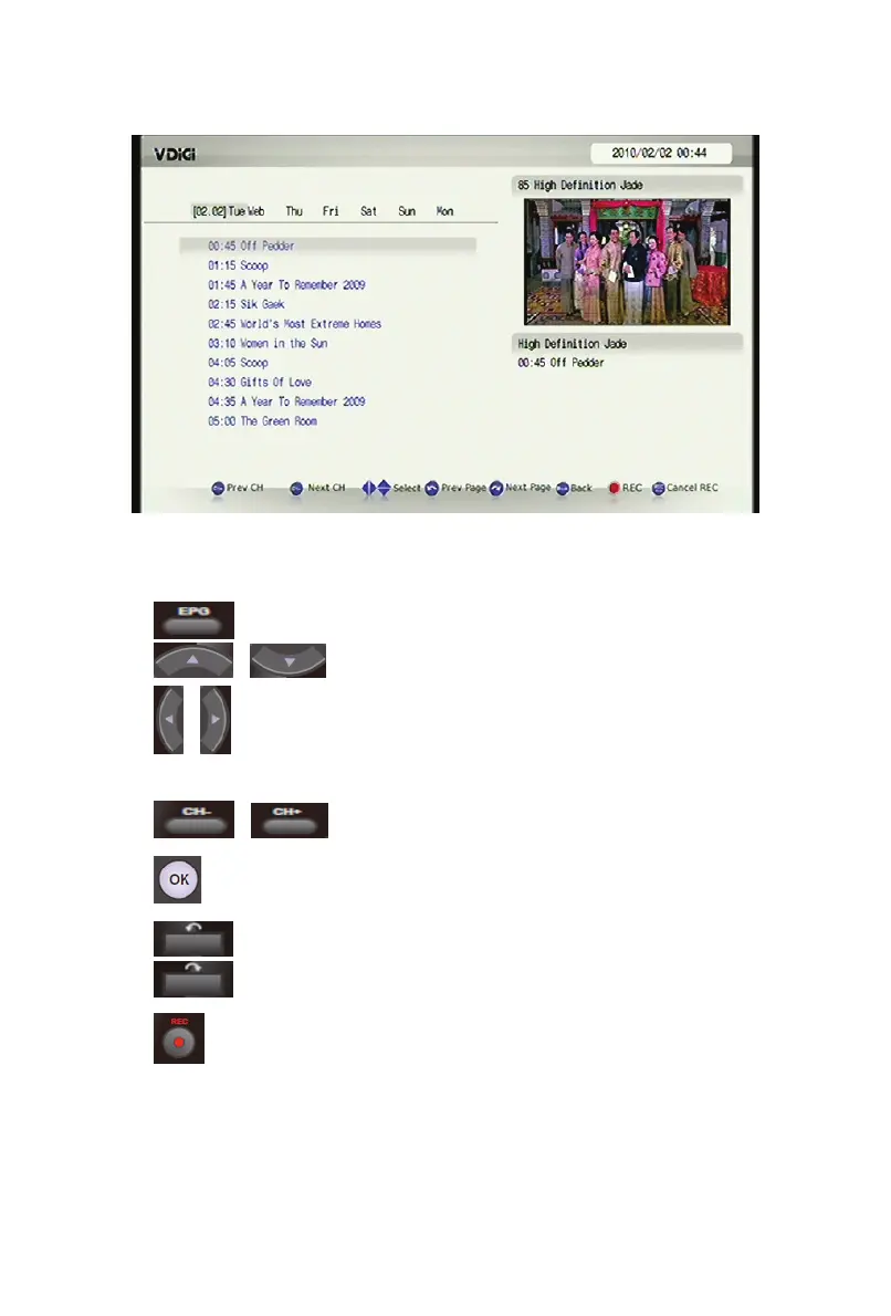 On the EPG Menu, various functions can be performed by the Remote