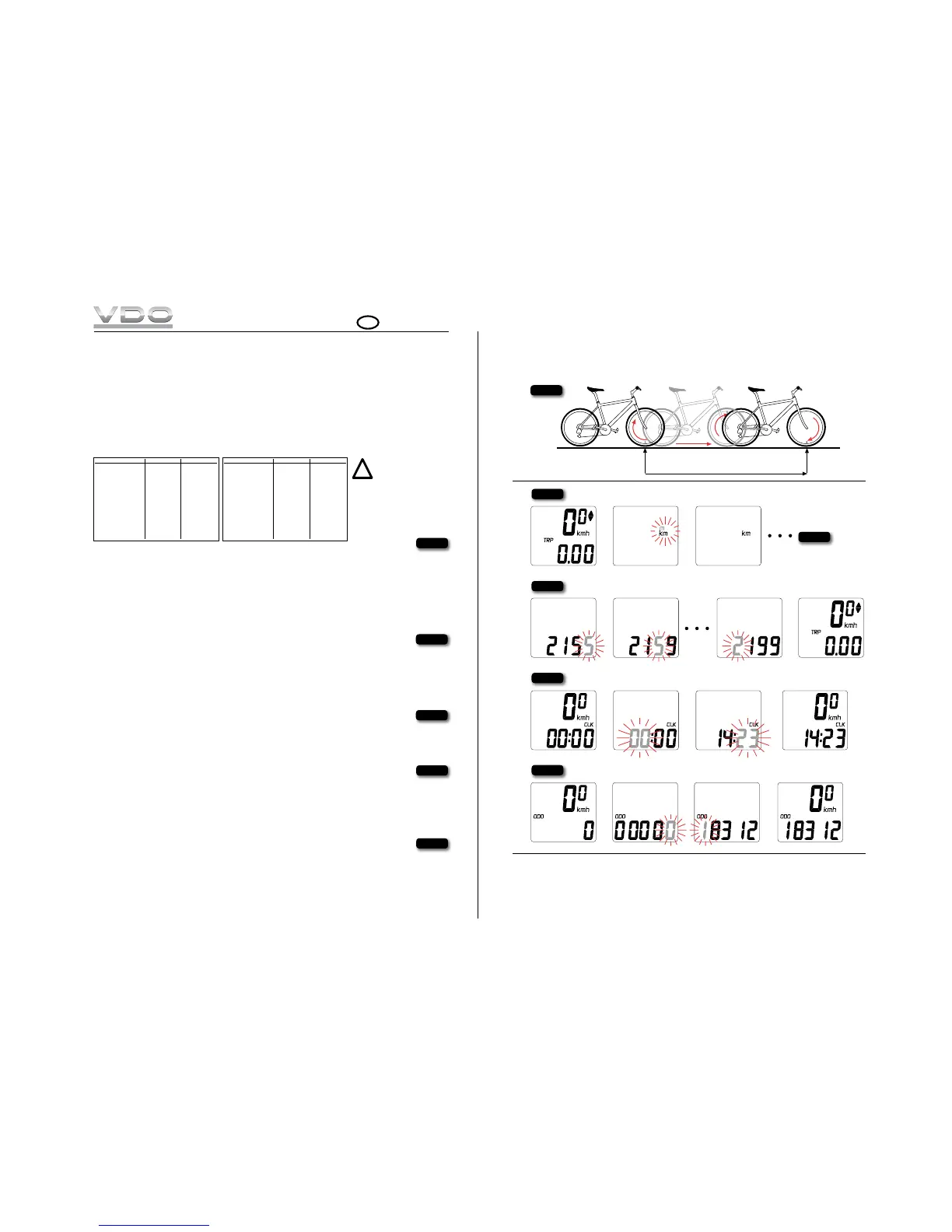 STEP 1 Change the flashing wheelsize-digit to requested value by pressing the MODE-button.