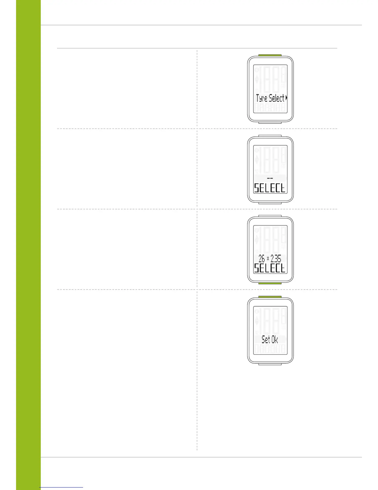 Press the BIKE button to scroll through the tyre list until
