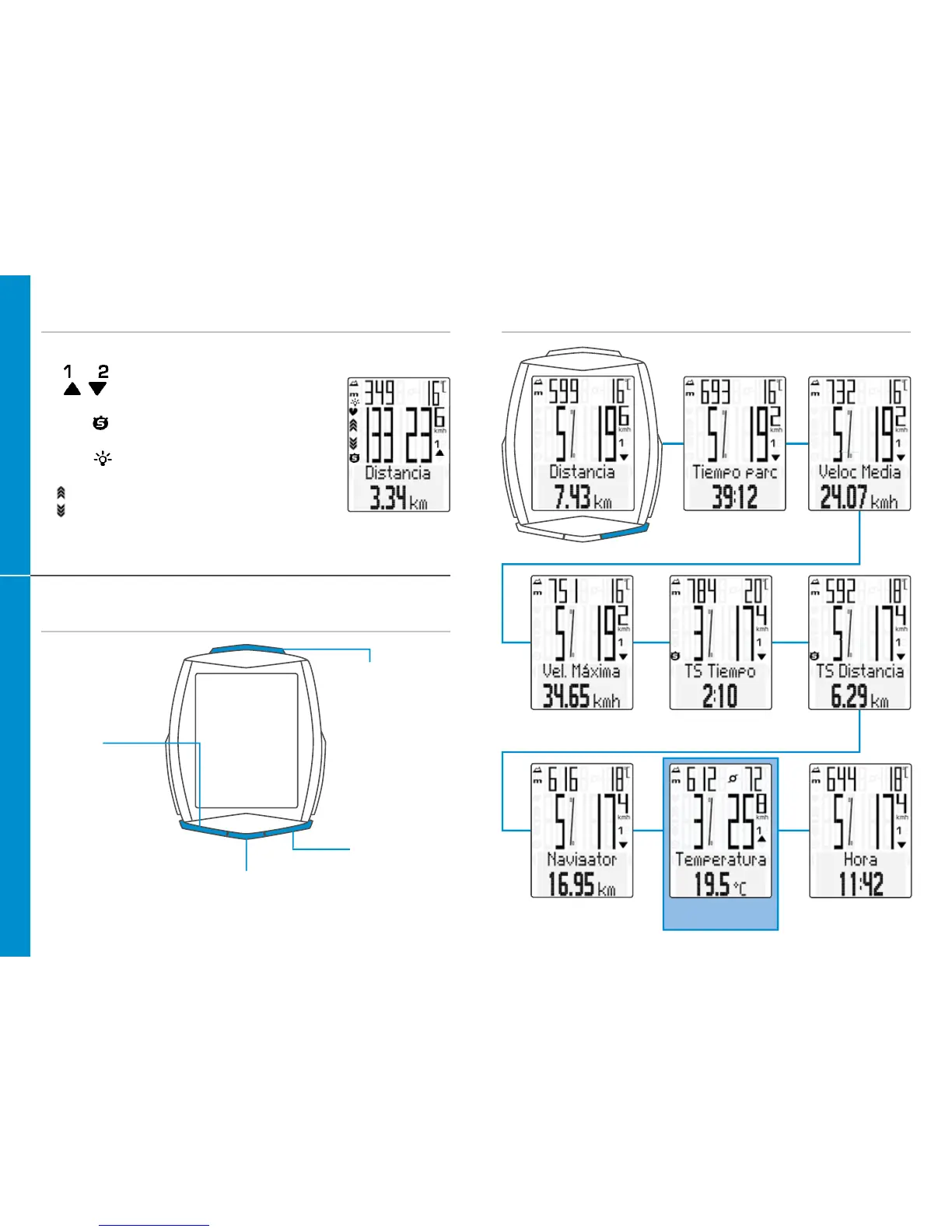 – “ ” o “ ”: muestra la bici 1 o bici 2 seleccionada