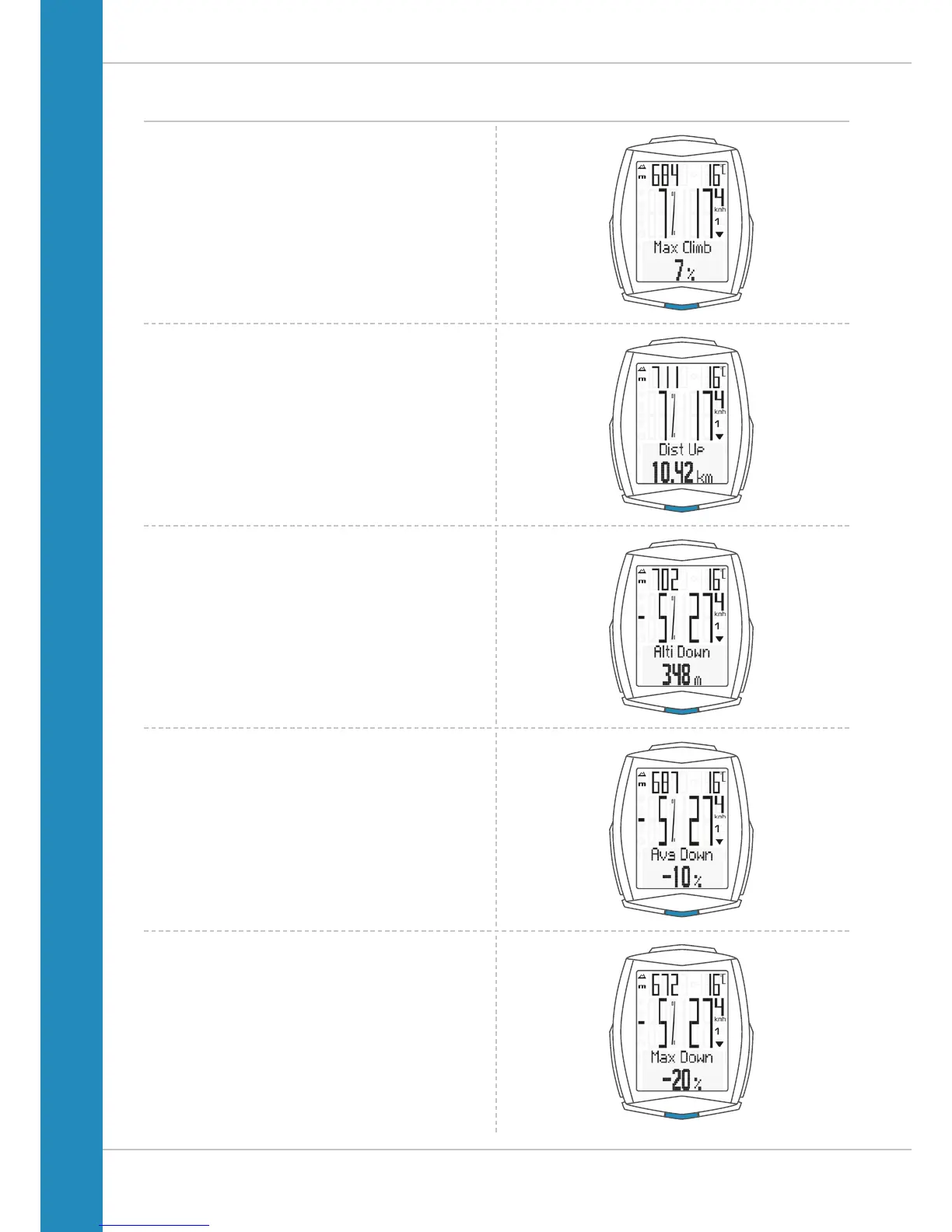Displays the maximum gradient uphill so far on the