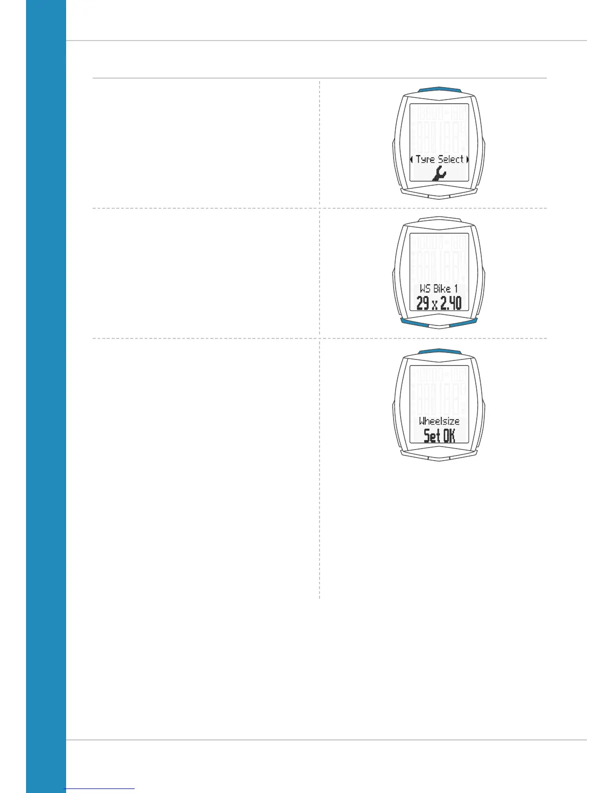 Press the BIKE or TPC button to scroll through the tyre list