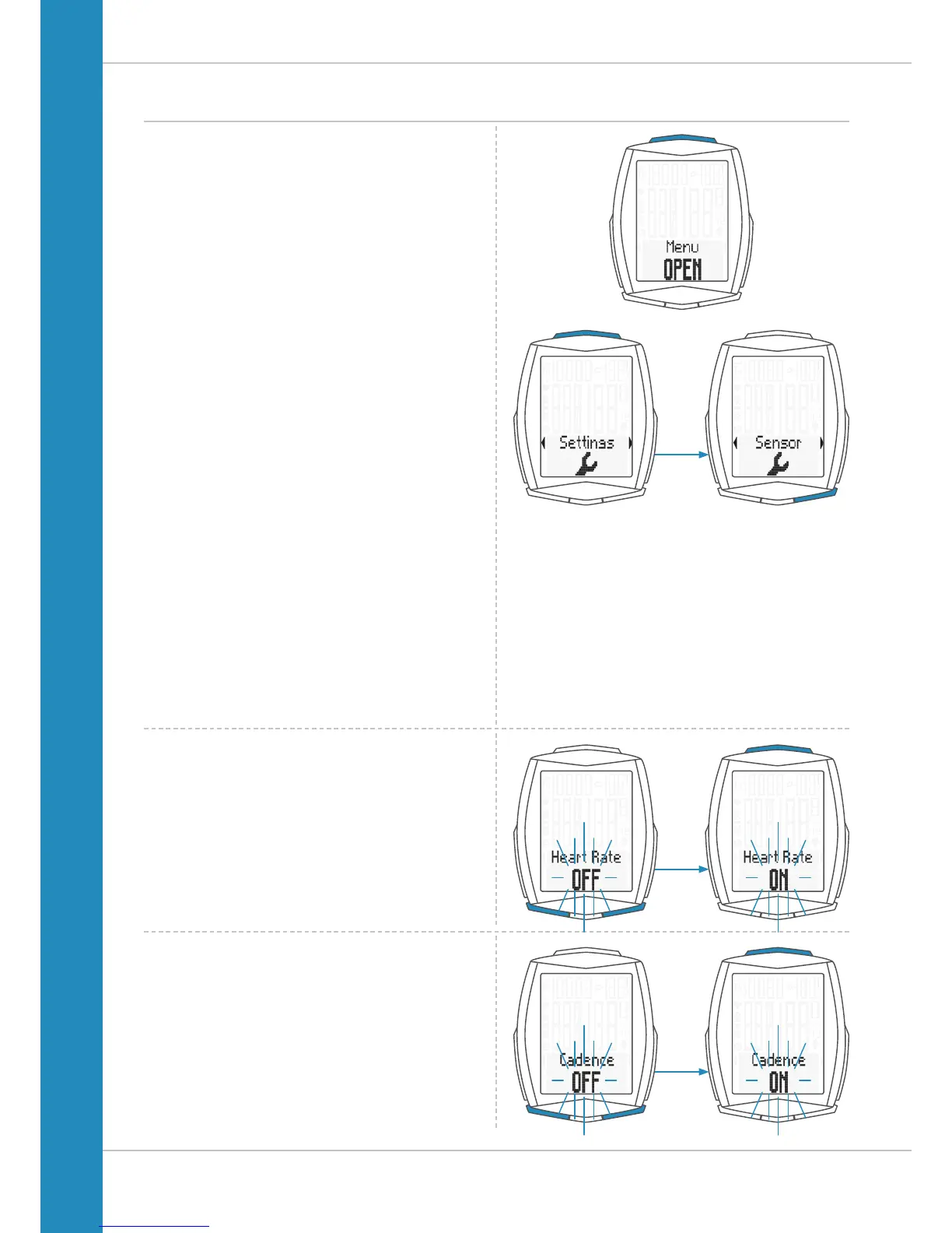 Press the BIKE button to scroll to the setting for the sensors.