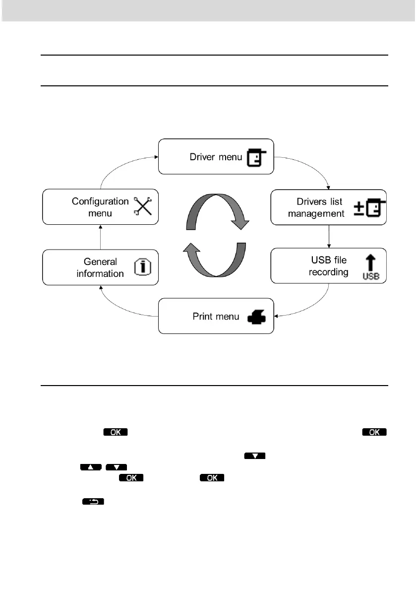 the menu and if pressed for more than 2 seconds, return to the main screen.