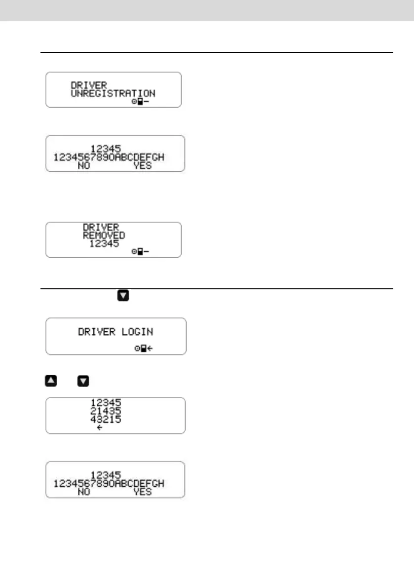 a) Driver selects the "Driver Unregistration" menu through the front panel keys.