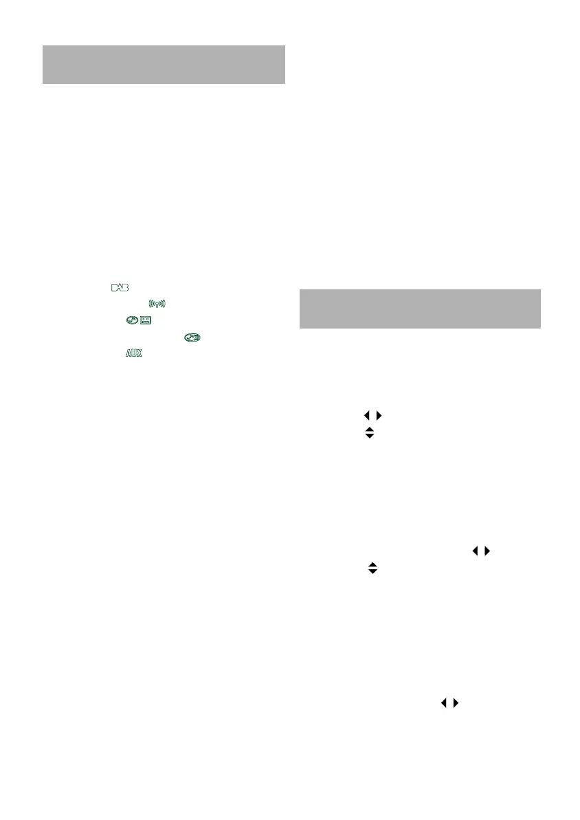 the chosen source (Tape, CD, CDC, DAB).