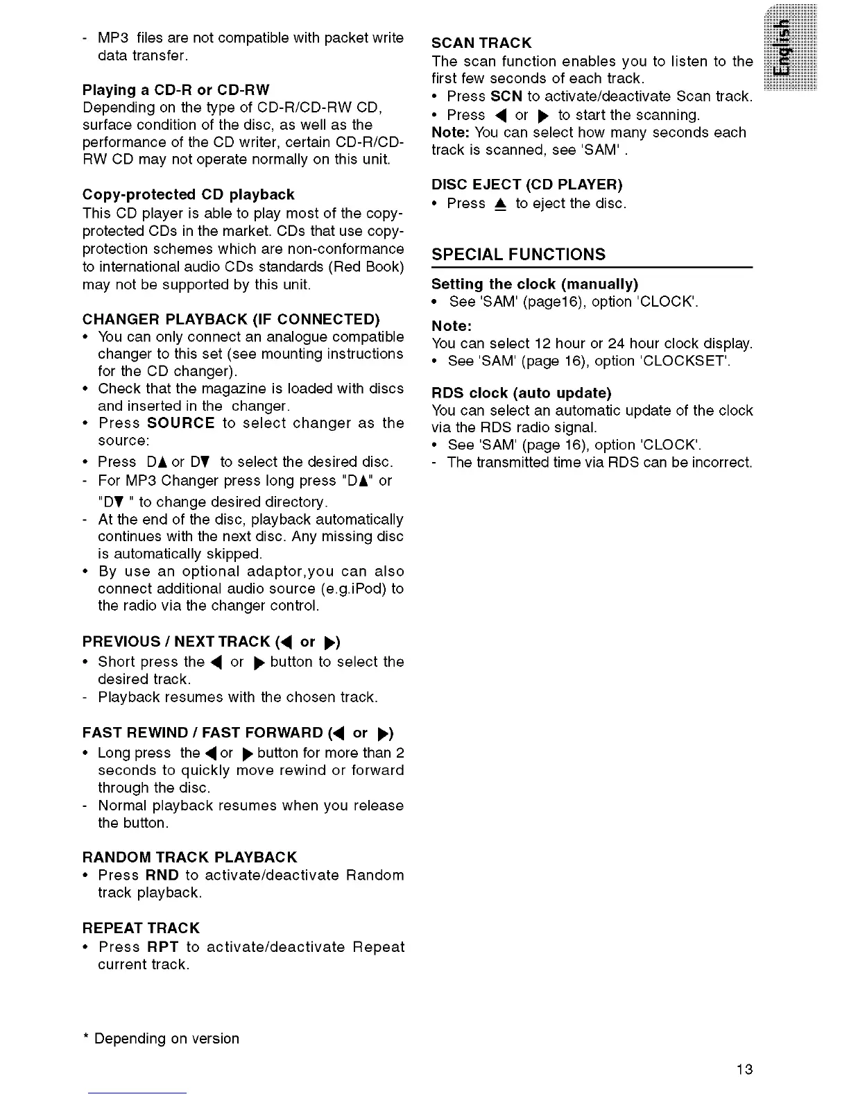 VDO CD 5206 X - Changer and Auxiliary Source Playback; Advanced Features and Settings; Special Playback Functions; Clock and RDS Clock Settings