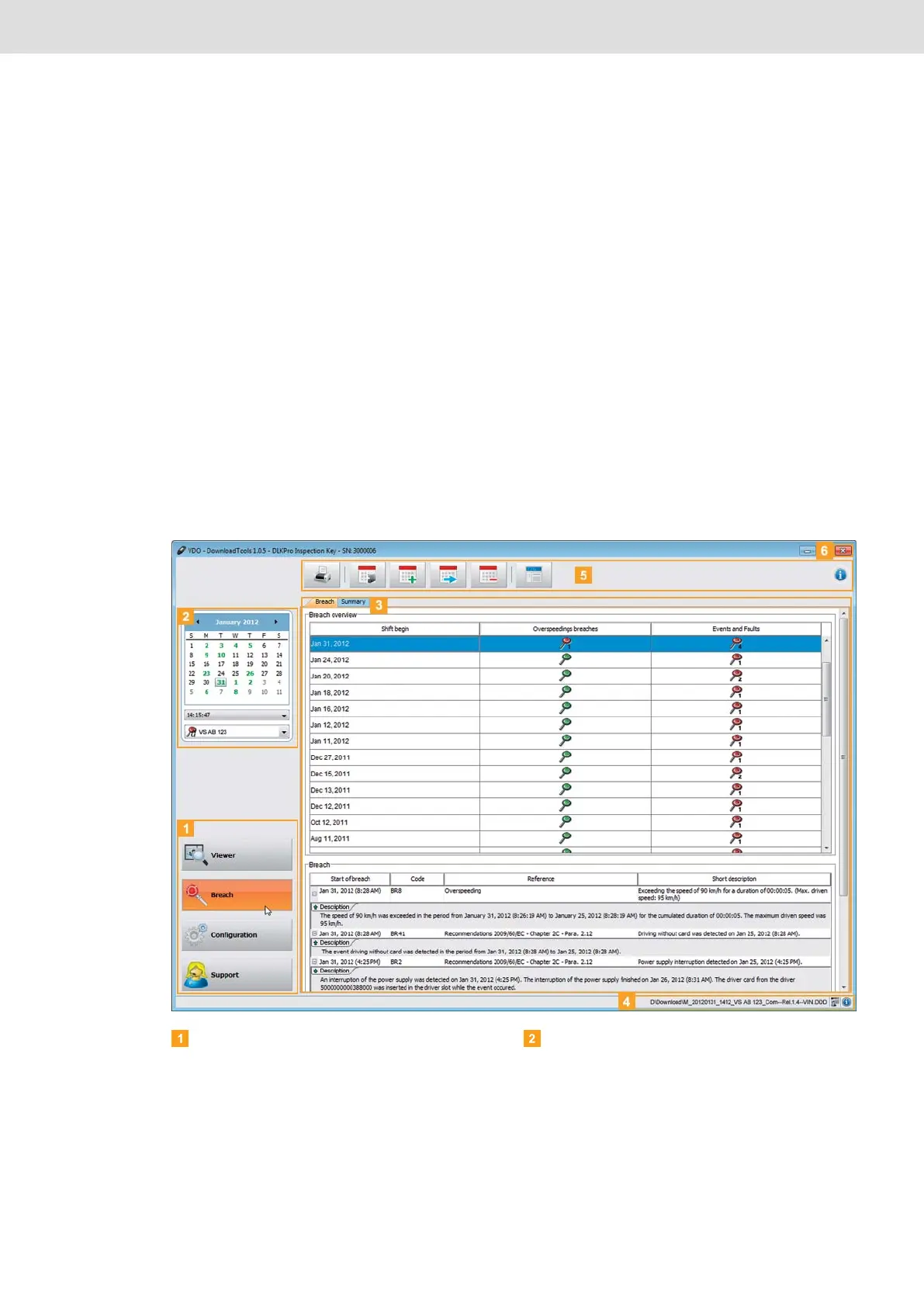 • the associated vehicle and driver card files.