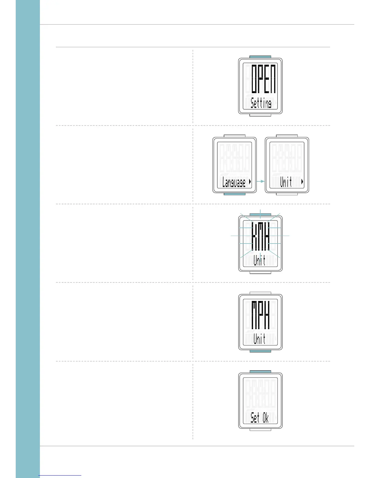 Press the SET button to open the unit setting.
